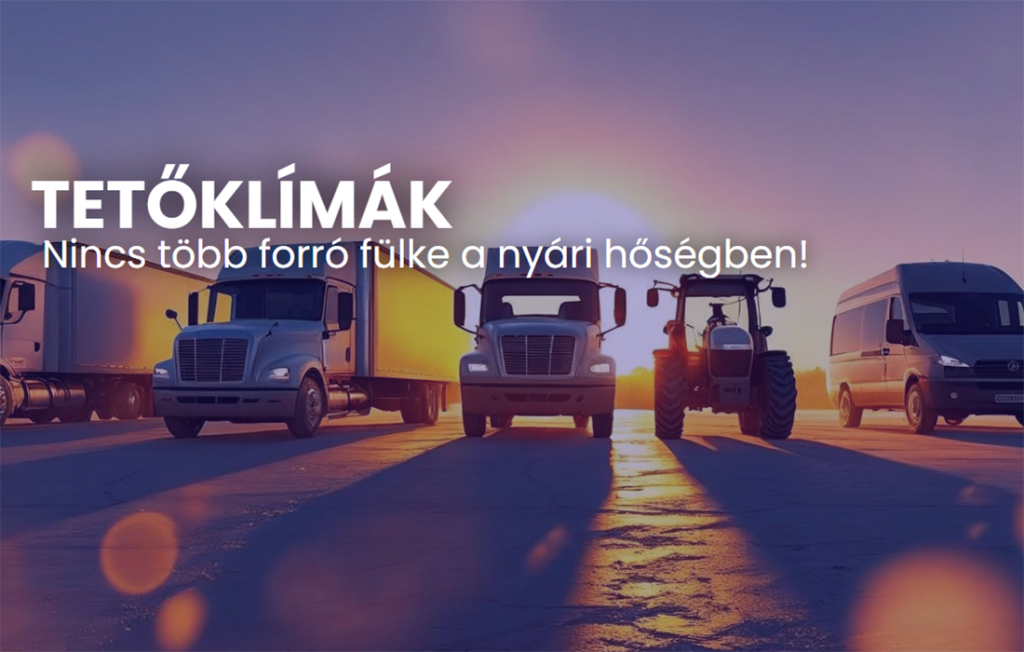 Az oldal tetőre szerelhető járműklímákat mutat be, amelyek kompakt kialakításukkal, hatékony hűtésükkel és egyszerű telepítésükkel ideálisak teherautókhoz, munkagépekhez és speciális járművekhez. A klímák nem foglalnak helyet az utastérben, így praktikus és helytakarékos megoldást nyújtanak.