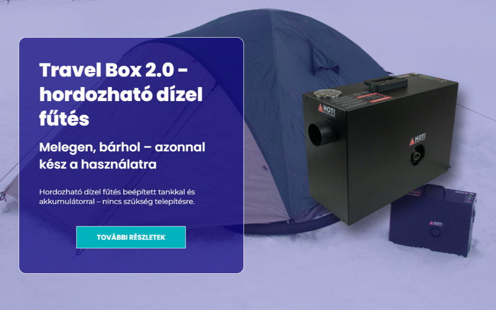 A Travel Box 2.0 egy hordozható dízel fűtőegység beépített tankkal és akkumulátorral, amely telepítés nélkül, egy gombnyomással indítható. Külső mérete körülbelül 50 × 40 × 20 cm, és a teljes súlya üzemanyagtartállyal együtt ~22,5 kg. Maximális teljesítmény mellett kb. 8 órán keresztül képes működni, fogyasztása 0,14–0,24 l/óra körül mozog.