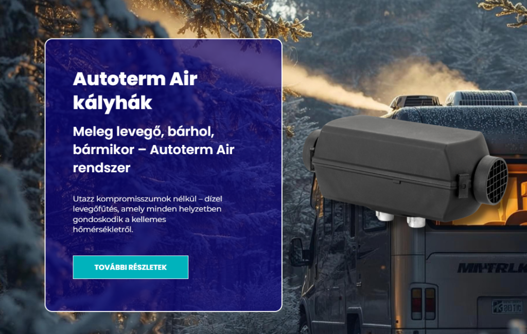 A Cool4U Automotive oldalán elérhető Autoterm kályhák a járművek független dízel fűtését biztosítják. Az Air 2D kisebb járművekhez, a 4D nagyobbakhoz ajánlott, alacsony fogyasztás és megbízható működés mellett. Ideálisak lakóautókhoz, furgonokhoz vagy hajókhoz, ahol fontos a gyors és hatékony kabinfűtés.